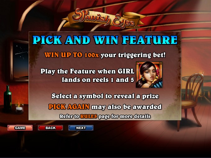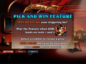 You can get paid up to 100 times the triggering bet with this bonus game, but first you need a wild Girl icon to be on both the 1st and the 5th reels in the same round. You choose a symbol, and a prize will be revealed. If you get Pick Again, you receive a second chance at a prize.