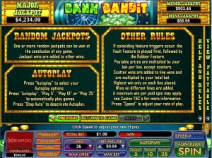 The game has some things in its design which are expected and appreciated, but there are some that don’t contribute much to the experience. The bank vault with its treasure is seen in the background, and then there are the themed symbols, which are well designed and quite appropriate for the theme. The non-themed symbols would be the poker cards, which have a glitter like quality, and which I haven’t enjoyed seeing. The reels have all black backgrounds which take a bit too much of the space.