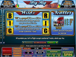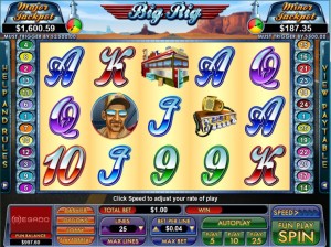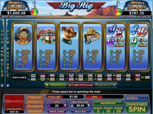 Big Rig is a trucker’s dream, a slot machine dedicated to the drivers that explore America’s roads, driving big rigs, eating at diners, talking with others via radios. These are also a couple of the symbols which are shown on the reels, revealing things that are part of a trucker’s daily life. You see the open road in the background, an appropriate image for this theme. While a theme that many will enjoy seeing, and in a game with better than average features, you will notice that there are a few too many symbols without a connection to this topic.
