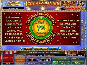 There are quite a few good reasons to try out Carnival Cash. The progressive jackpot is one of them, the feature guarantee along with the rest of the features is another, and then you have the theme and the way it was designed.
