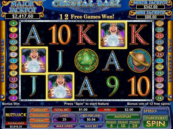 In Crystal Ball, the betting range starts at $0.01 and reaches a maximum of $25. 1 to 25 coins are used each round, with the number of active lines being the same. The coin’s denomination is between $0.01 and $1.