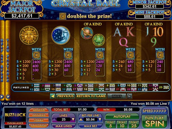 This Crystal Ball slot is offered by all online casinos with NuWorks software, playable either in practice or in real money mode.