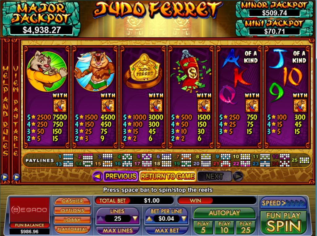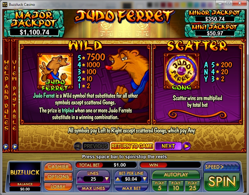 The Judo Ferret slot machine is offered through the NuWorks platform, so if you want to play it for real or just to practice, look out for casinos that use it.