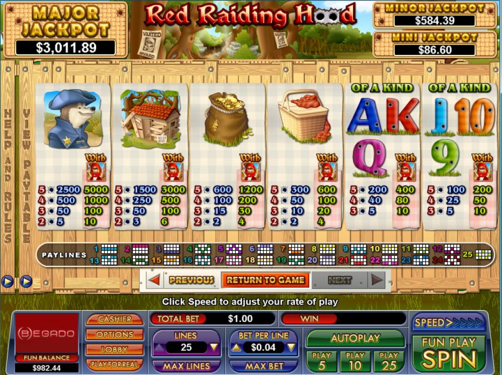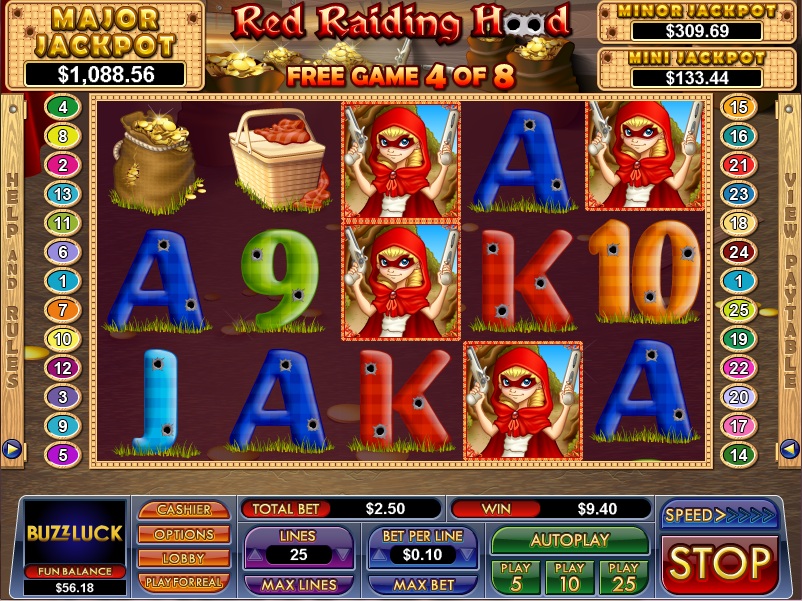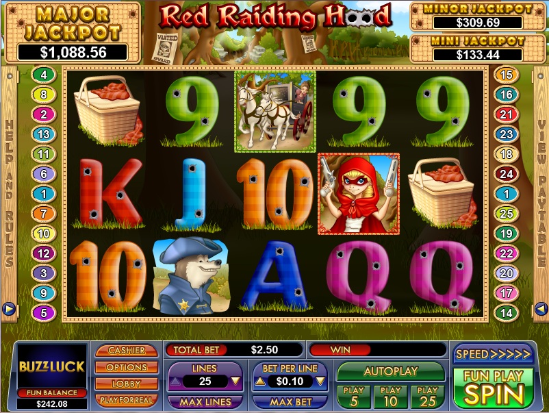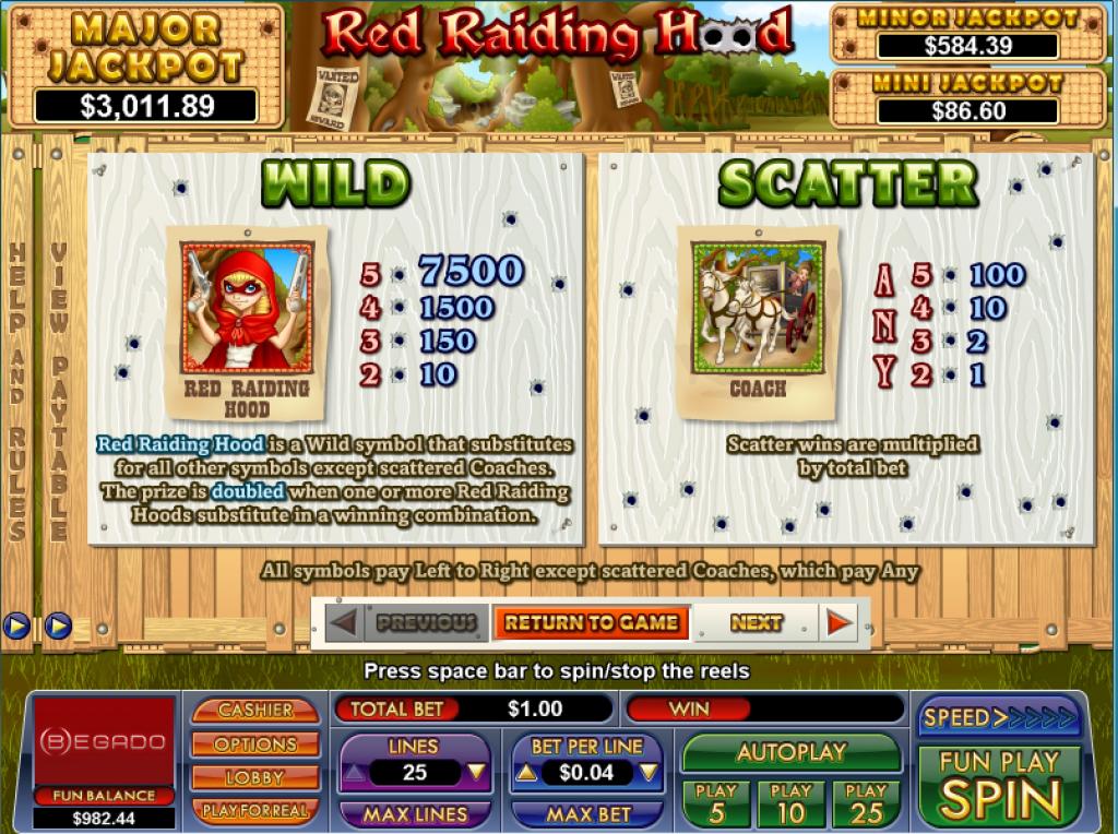 Red Raiding Hood herself will give you the best prizes of the game, where 7,500 coins have a top value of $7,500. The alternative is one of the randomly triggered jackpots (Major, Minor or Mini).