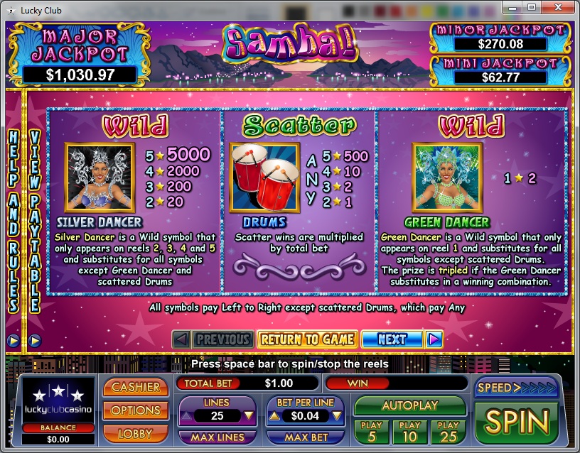 In a game that gives away up to $12,500, and where you also have progressive jackpots, chances are that you’re going to find a reason to give it a shot even if you’re not a fan of Samba.