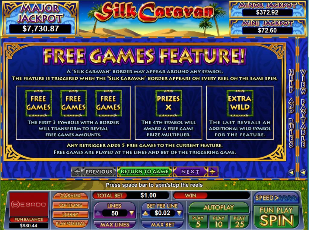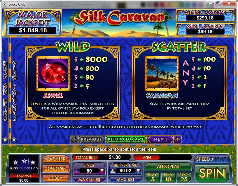 You can get paid up to 8,000 coins in Silk Caravan, which would mean $8,000 cash. The Major, Minor and Mini Progressive Jackpots can be randomly triggered at the end of a spin.