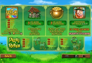 There is nothing truly special about Plenty O Riches. The design is normal for an Irish theme, using all the things that people think about when the luck or the legends of this country are mentioned. You have the famous leprechaun, with his pot of gold which is buried at the end of the rainbow, plus other things with a luck connection, like the wishing well or the shamrock.