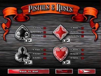 The top rewards in this game will come from the Red Rose wild, which when forming its own combo will pay up to 1,500 coins, meaning up to $15,000.