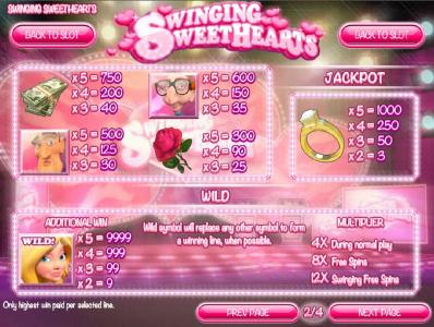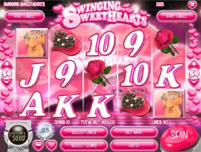 The Swinging Sweet Hearts slot machine is offered through the Rival platform, so if you want to play it for real or just to practice, look out for casinos that use it.