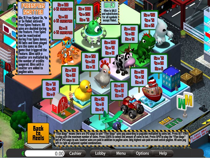 ArcadiaArcadia is a highly unusual slot machine, which was created by developers from Saucify/BetOnSoft. The game doesn’t look like a slot machine at first, which is the unusual part. It looks like a manufacturing area, with various objects coming out of it. The objects found in front of the building are arranged on three rows and five columns, so the layout of the slot is typical if you take a closer look.