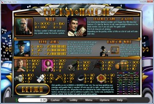 The design looks a bit dark, and it fits the theme very well. You see a city at night behind the reels, with retro cars on both sides. The symbols are all themed and they give you a look at all the characters from this mafia story, plus the various weapons and tools of the trade. There are no poker cards inside, a definite bonus in the game’s favor.