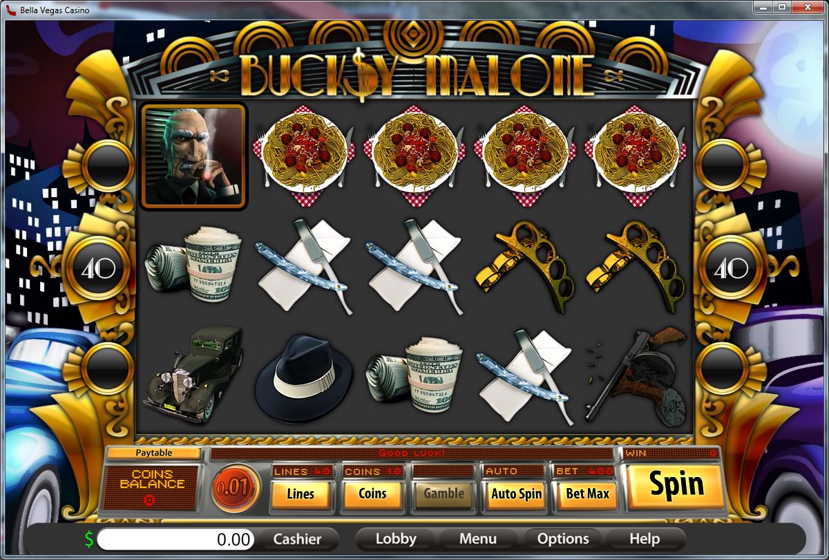 You will find Bucksy Malone at any online casino which chooses to use software from Saucify/BetOnSoft , playable either for free or for real money.