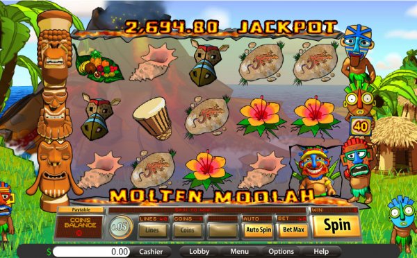 Molten-MoolahMolten Moolah is a slot machine with a modern layout, but with a tribal theme which takes you to some kind of Pacific island where a volcano is erupting. The island is also inhabited, and you have a chance to see some of the tribe members that live there, along with things like flowers, shells, ceremonial masks, feasts and so on. It’s a Saucify slot machine, and it manages to show off some of the things that make this region special, complete with the Tiki style carvings. Of course, it doesn’t hurt at all that it offers a progressive jackpot.