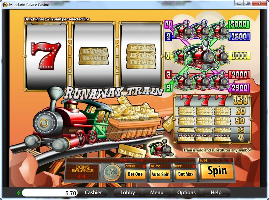 The Runaway Train slot machine is offered through the Saucify/BetOnSoft platform, so if you want to play it for real or just to practice, look out for casinos that use it.