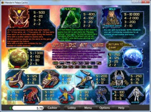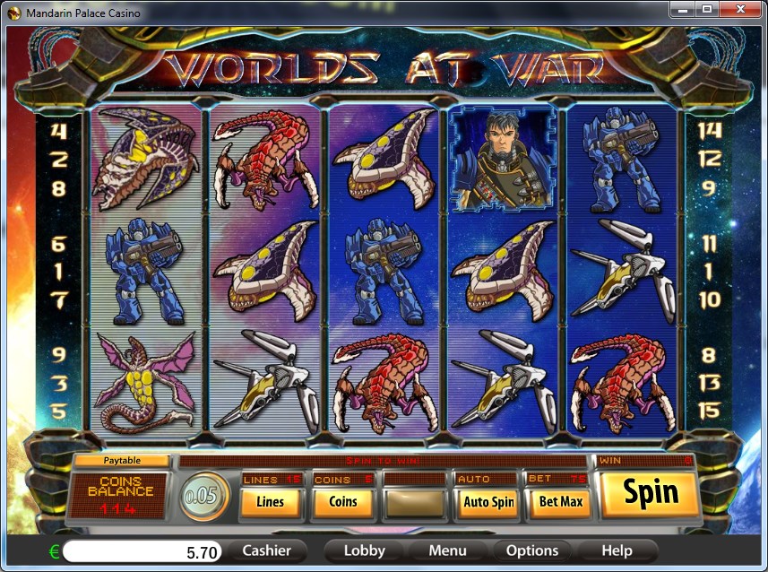 You will find Worlds at War at any online casino which chooses to use software from Saucify/BetOnSoft , playable either for free or for real money.
