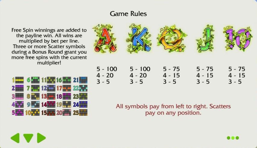 5 reels are used in Dwarven Gold, with a maximum of 25 active lines. There are plenty of features inside as well, including free spins with 6x multipliers, bonus rounds, scatters and wilds. Prizes of up to $2,500 are advertised.