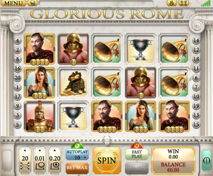 Glorious-RomeGlorious Rome is one of those games that tries to pay tribute to the Roman Empire, and to what it represented when it was at its highest level of importance. There are a lot of things that we know about Ancient Rome, and you will find those details among the symbols and surrounding graphics of the game. Top Game included Roman soldiers, gladiators, Roman ladies, Emperors, grapes and lots of gold coins.