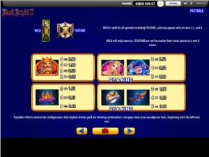 A game which offers you 5 reels and as many as 40 paylines to bet on, Black Knight II has free spins, wilds and scatter symbols as the main features. Its top prizes will give you up to $6,000.