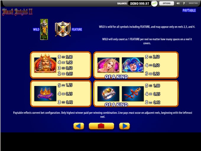 As you can probably guess when you see the title, Black Knight II is the sequel for Black Knight, both of them being slot machines which were created by the WMS designers. The same Medieval Europe theme was chosen for both slots, with similar features being used as well. The design is the one that has changed, the game playing mostly the same in other ways, with the features not changing much.