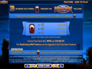 You can retrigger the free spins as you play through the initial batch, plus you will win bigger prizes, since a 2x multiplier is applied to the wins.