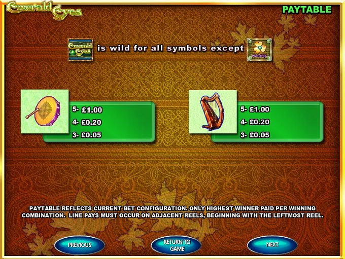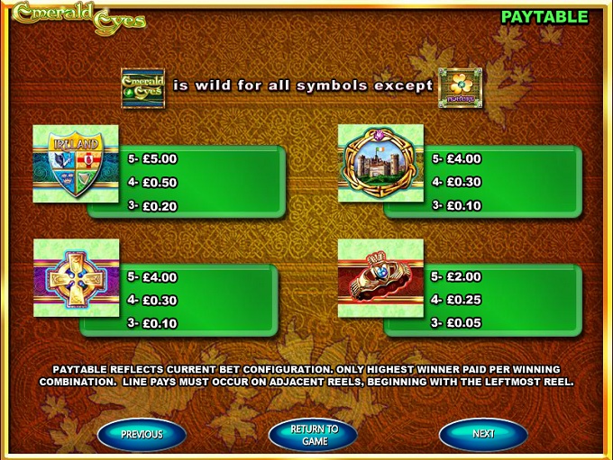 The theme in Emerald Eyes is based on the Irish, though we get a look at their history and medieval heritage in this game, and not just a focus on leprechauns and pots of gold, like very other slot machine does when it gets this theme. This game was created by the developers from WMS. Based on the quality of the design, and the features which are at least decent, I’d say that it offers you plenty in exchange for the money you wager when you play it.