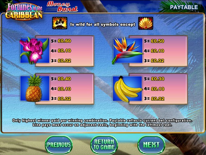 This Fortunes of the Caribbean slot is offered by all online casinos with WMS software, playable either in practice or in real money mode.