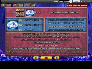 The wild symbol has the game’s logo on it, with the words Gems Gems Gems stacked on top of each other. It is a symbol which is capable of giving up to 200 coins in prizes when forming its own combo, while when it doesn’t do this it acts as a wild symbol and substitutes for others that are trying to create combinations. The Diamond scatter is the only one which can’t be replaced with a wild.