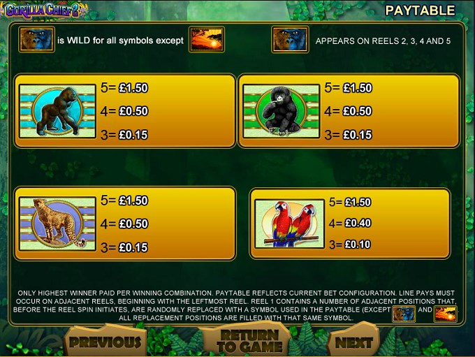 This Gorilla Chief 2 slot is offered by all online casinos with WMS software, playable either in practice or in real money mode.