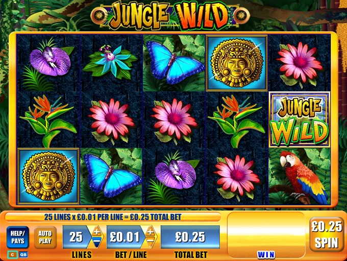 Jungle Wild is indeed inspired by the wild part of the jungle, by its flowers and insects especially, but it has a human component to it as well, with a couple of symbols showing the kind of idols that you would’ve found at the ancient civilizations from South America. The game was designed by the WMS designers and it’s a pretty typical title for them, if you discount the choice of theme at least.