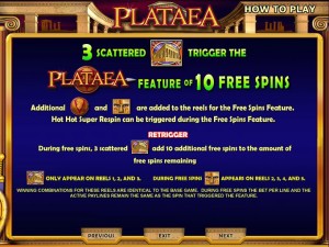 The Plataea slot machine is offered through the WMS platform, so if you want to play it for real or just to practice, look out for casinos that use it.