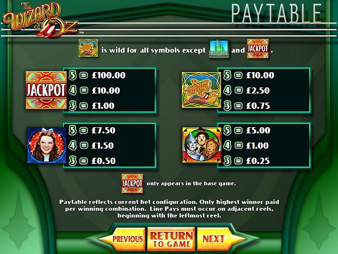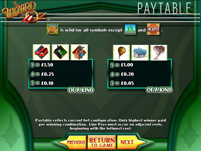 The Wizard of Oz is a WMS slot machine which is themed around the 1939 movie with the same name. Since that’s the case, you can expect to find on its reels images of actors that played in it, plus a number of symbols which show you objects that were in the movie, though in this case they are computer made and you can guess that they’re drawings rather than photos of the real thing. It’s one of the three slots that WMS designed with the same topic, though each one offers a different experience ultimately.