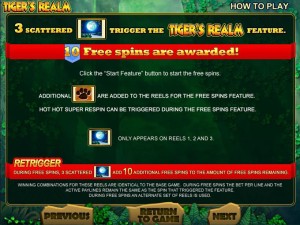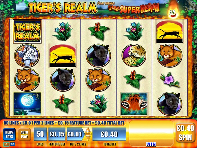 Tiger's-RealmTiger’s Realm is a WMS designed slot machine, which chooses to focus on the tiger and its environment, but also on a number of other big cats, predators that the jungles will host. Things like flowers take up a decent number of symbols as well, so there is a mix of dangerous animals and delicate plants on the reels of the game, making this tiger’s realm appear quite interesting.
